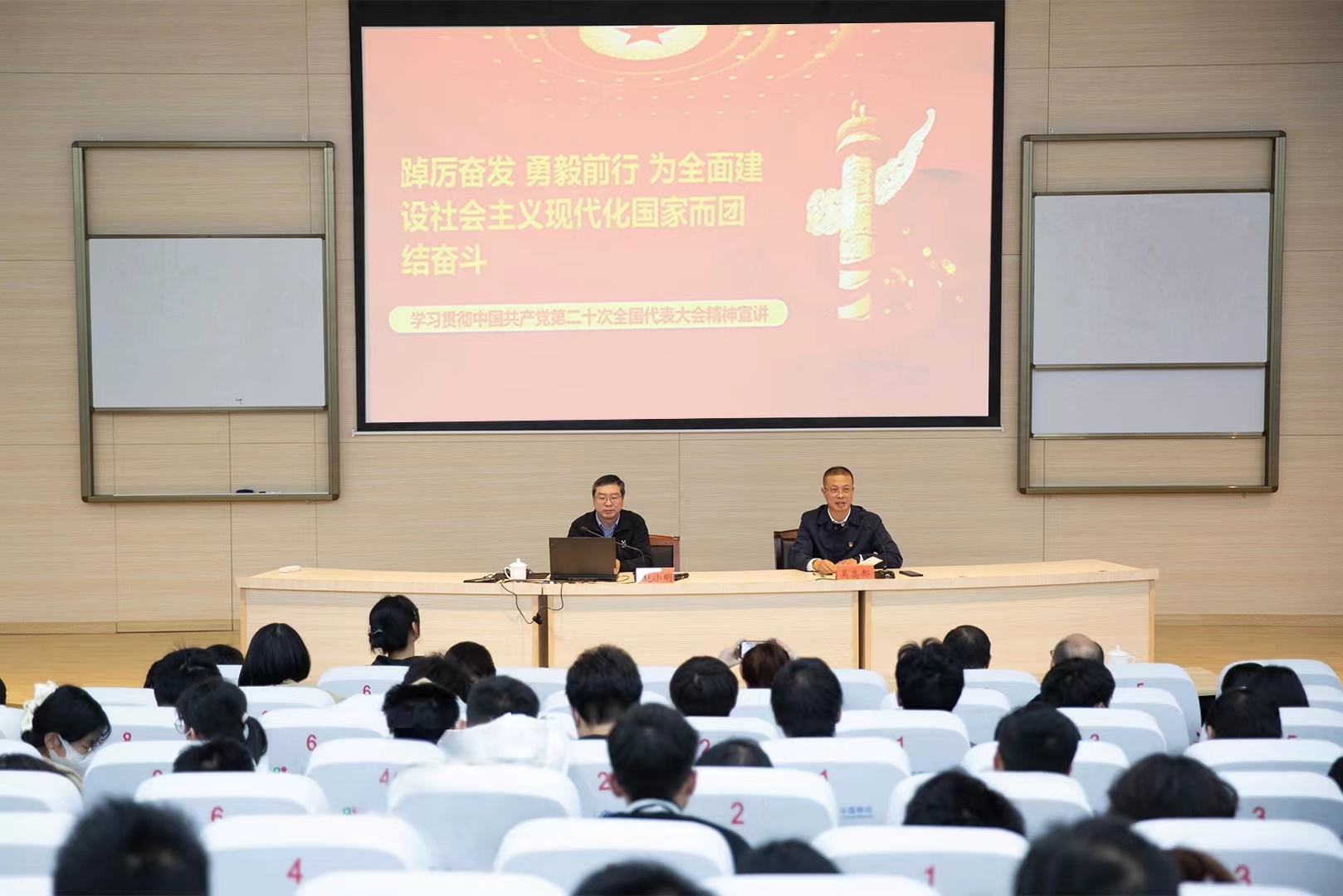 11月24日,校党委委员、副校长赵小明到77779193永利集团宣讲党的二十大精神。学院党总支副书记吴高都主持,学院党政领导、师生代表共300余人参加宣讲会。