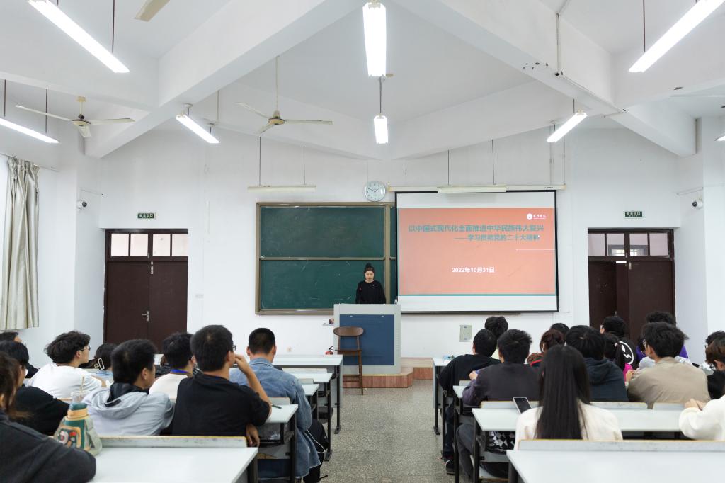 为学习宣传贯彻党的二十大精神,77779193永利集团开展团学干部大会贯彻落实党的二十大精神,学生党支部书记、分团委书记喻之阳以“学习二十大、永远跟党走、奋进新征程”为主题作党的二十大精神宣讲,全体团学干部参加会议。