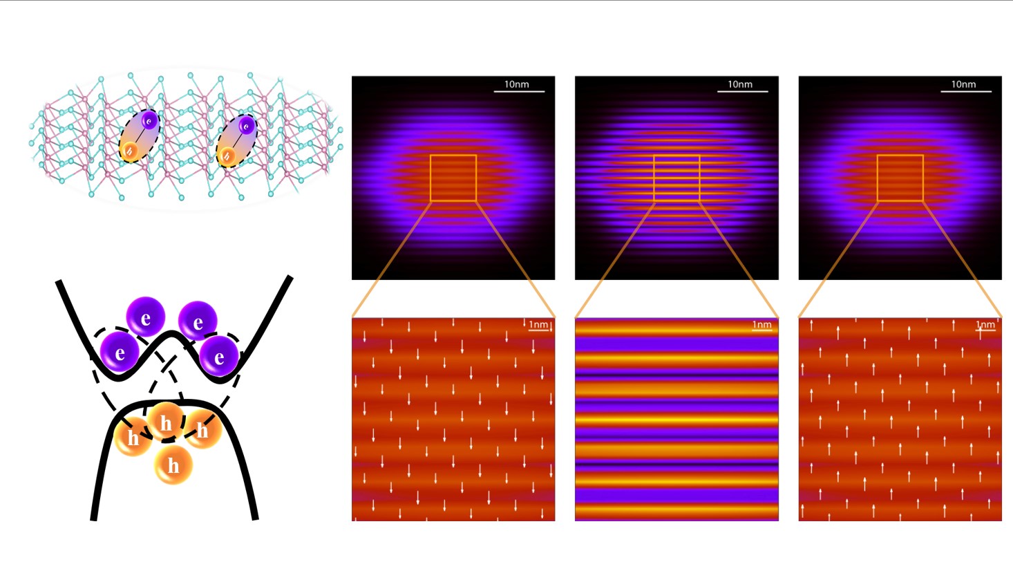 t图 拓扑激子绝缘体基态(左)与拓扑激子密度波(右)