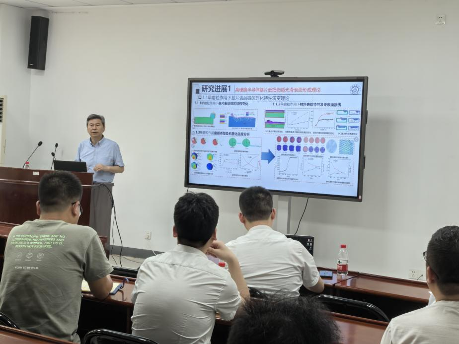 在题为“新一代半导体基片研抛加工研究进展”的学术报告中,左敦稳教授介绍了新一代半导体基片低损伤超光滑表面形成机理及用于高硬脆半导体基片的聚集体磨料及研抛工艺优化,阐述了面向基片加工过程的实时多维感知监控方法和数据驱动的半导体基片智能产线运行模式。