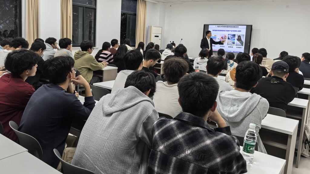 11月10日,天津大学李立强教授、苏州大学李耀文教授应邀来校作题为《高稳定性有机光电材料与器件》、《柔性钙钛矿太阳能电池及产业化》的学术报告。讲座由陆仕荣院长主持,吸引了多位骨干教师及研究生、本科生前来聆听。