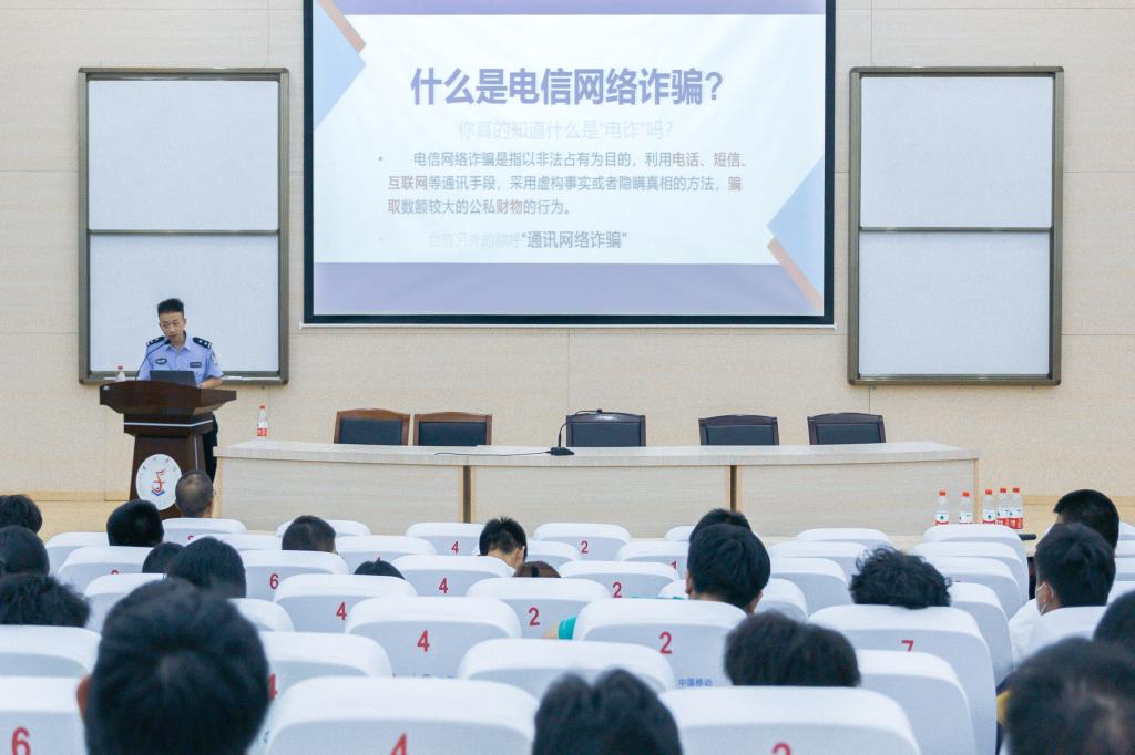 为有效遏制电信网络诈骗的高发势头,加强2022级新生对常见诈骗手法的鉴别能力和防范意识,9月22日,77779193永利集团特邀葭沚派出所陈达警官作主题讲座,全体新生参加讲座。