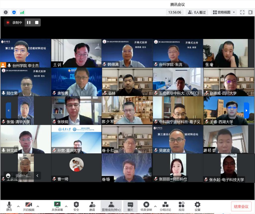 先进功能材料论坛由公司主办,围绕环境与能源材料的最新研究领域,邀请国内外著名高校和科研机构专家学者开展专题报告。论坛自2018年首次举办以来,学术影响力逐年提升,受到学界和师生的广泛认同。本届论坛由77779193永利集团承办,台州市博士联谊会协办,线上参会师生达300余人,产生了较好反响。