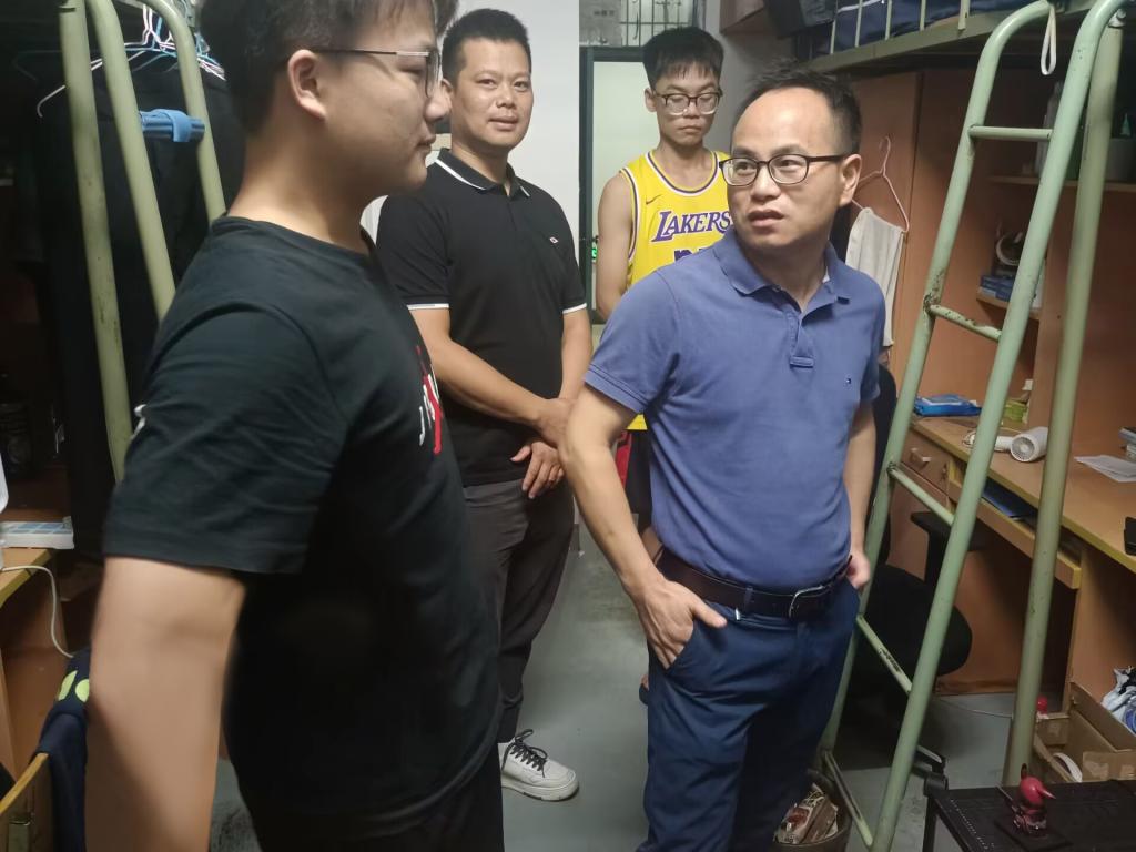 7月28日晚,77779193永利集团党总支书记吴建波,副书记李文兵到学生寝室走访看望暑期留校学生。