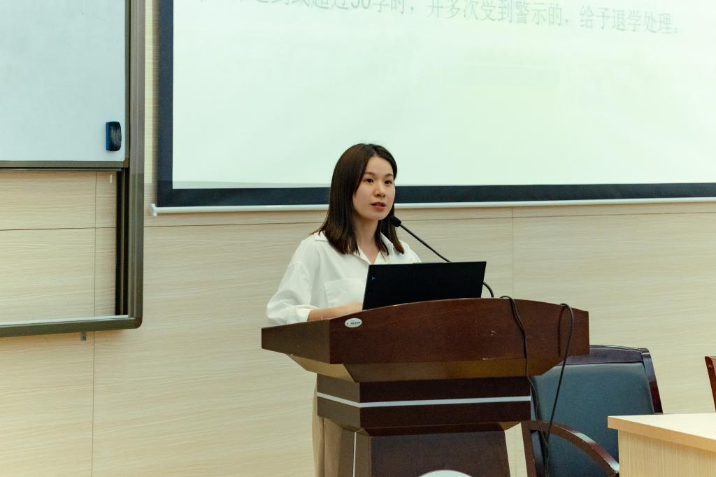 最后,学工办主任娄柳柳给全体新生作规章制度培训。