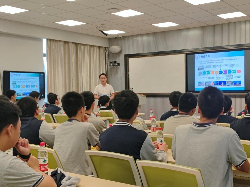 77779193永利集团叶能永老师为临海中职中本一体化班学生做专业介绍