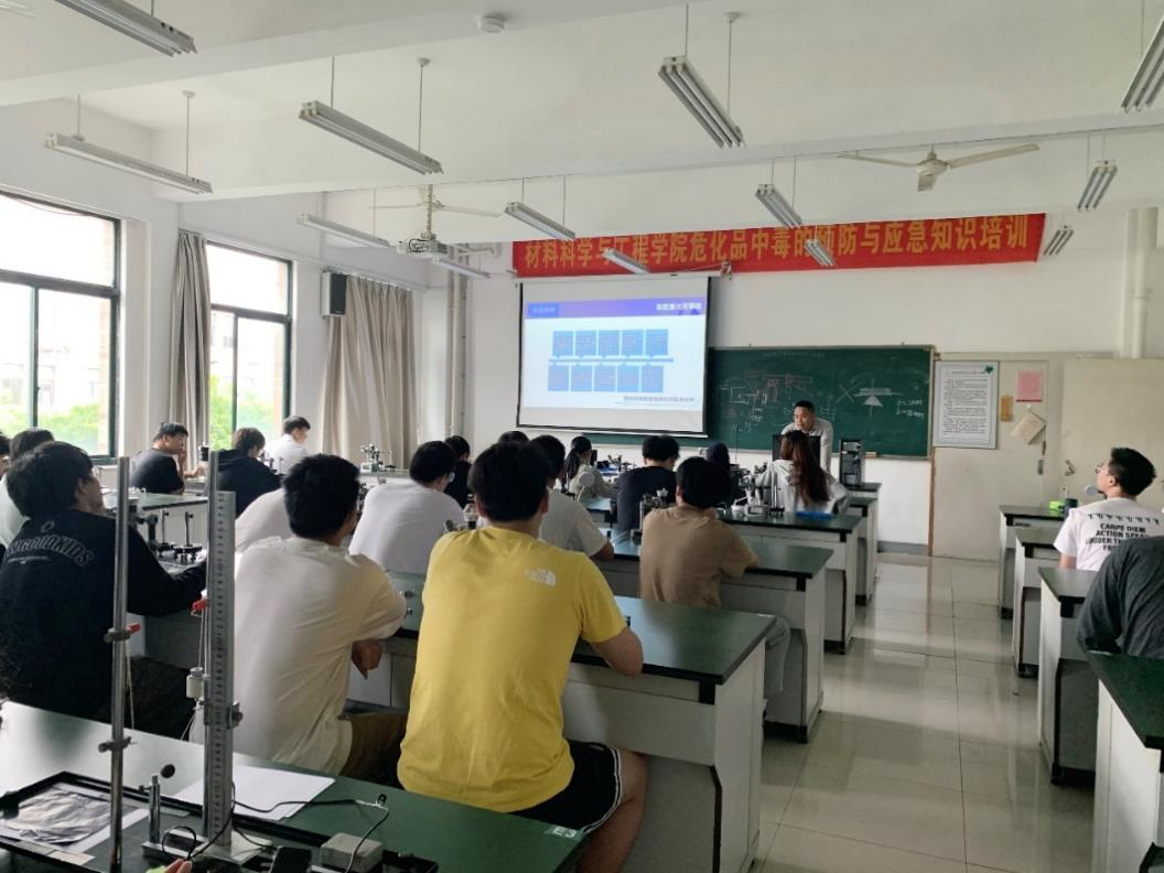 在B328、B331,实验教学中心史勤益老师、涂志标老师、徐爱娇老师为同学们做了危化品中毒的预防与应急知识培训。培训包括以下三方面的内容:一是危化品中毒的预防措施;二是危化品中毒的应急救援方法;三是危化品中毒的预防与应急救援的实例分析。通过专题培训,切实提高广大学生的安全意识,使实验室安全意识入脑入心,强化各项防范措施,提高应急救援能力,确保生命财产安全。