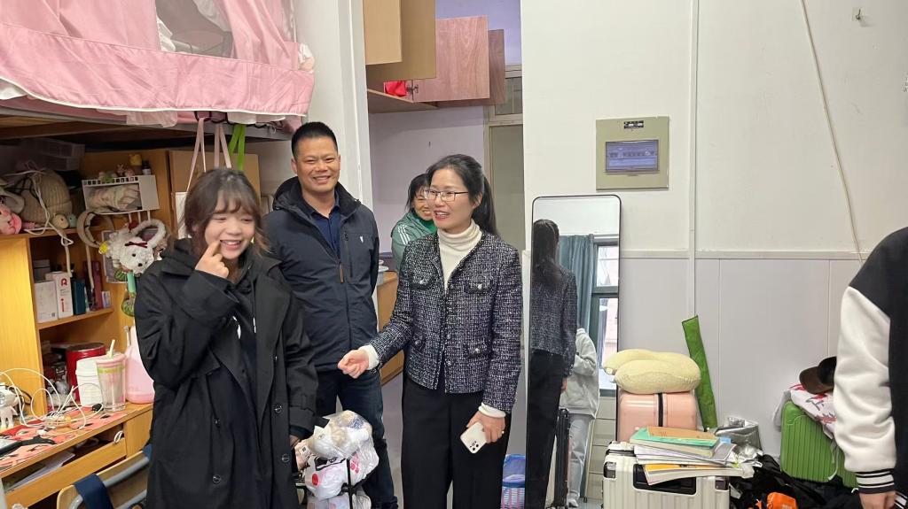 走进学生宿舍,郑丽君详细询问了同学们的住宿感受,寝室成员相处情况,学业进展情况,以及对自己未来职业发展的规划和期望。她耐心听取了同学们的意见和建议,鼓励大家要珍惜宝贵的大学时光,充分利用学校提供的各种资源和平台,努力提升自己的综合素质和能力。走访过程中,郑丽君还仔细察看了宿舍的卫生和安全情况。她强调,宿舍是同学们学习、生活的重要场所,大家要共同维护宿舍的卫生和整洁,消除安全隐患。同时,她还特别提醒同学们要防范电信网络诈骗,保护好自己的个人信息和财产安全。