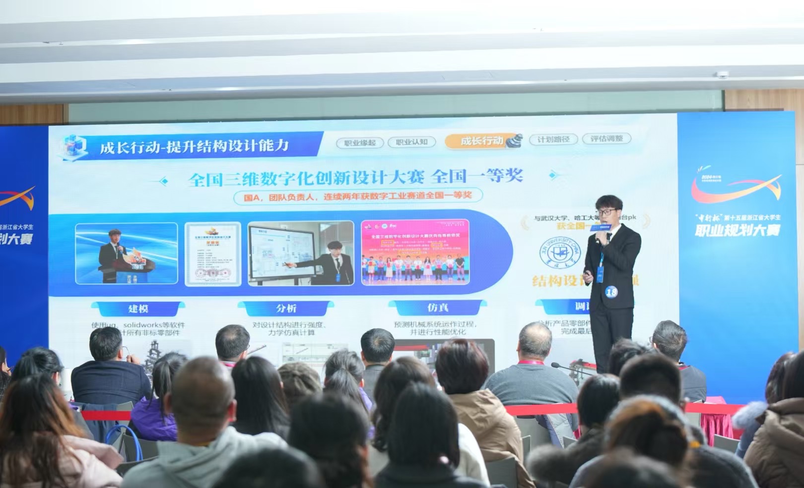 2024年12月26日至27日,由浙江省教育厅主办,浙江省教育发展中心、浙江经济职业技术学院联合承办的“中行杯”第十五届浙江省大学生职业规划大赛决赛在浙江经济职业技术学院举行。经过省内各高校的选拔推荐,共有105所高校869名选手参加省赛复赛。经专家组评议,共有214名选手入围省级决赛。在此次大赛中,公司选手彭科瑞成功入围省赛决赛,并获省赛银奖,这也是公司在职规赛并入省级“三大赛事”后的首次突破!