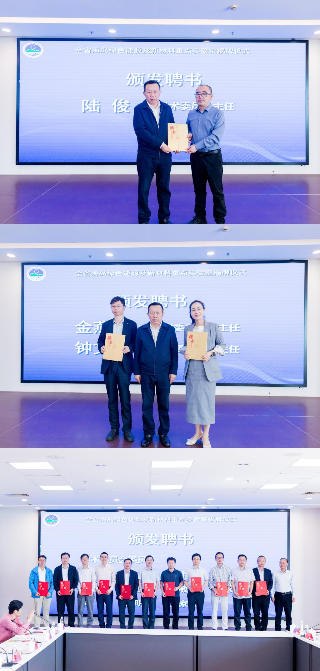 乐传永、王智承、韩得满、陆俊共同为实验室揭牌,开启重点实验室落地运行新篇章。揭牌仪式后,乐传永、韩得满为重点实验室学术委员会主任陆俊、副主任钟文武、金燕仙及委员孟国文、王训、吴宇平、王定胜、黄小青、方俊锋、高敏锐、李彦光、侯阳、杨明辉、王家成教授颁发聘书。