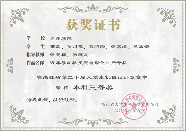 田磊三等奖