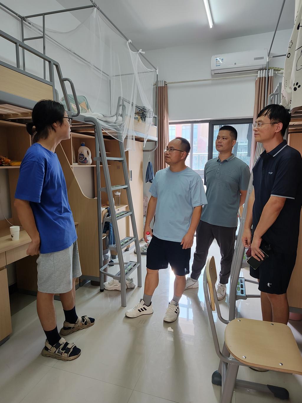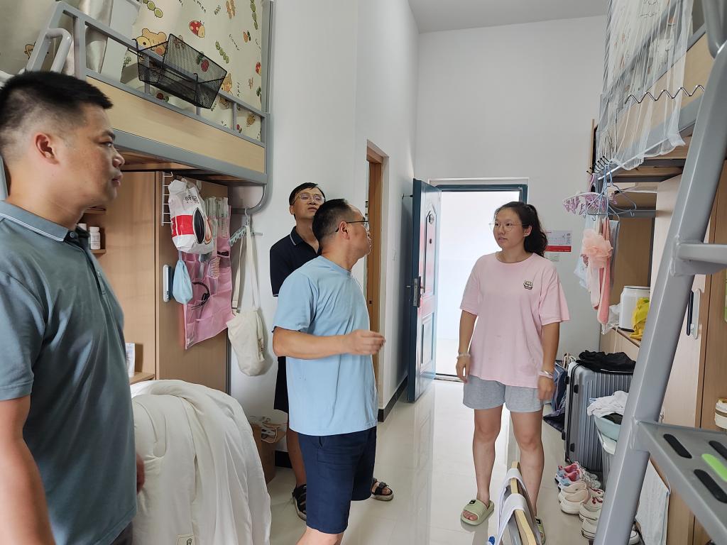 吴书记一行逐一走访各宿舍,详细询问了联培研究生的学习、科研、职业规划、饮食、通勤等情况,叮嘱各位同学明确目标,科学规划,在校期间不断提升个人能力;合理安排饮食作息,提升身体素质和学习能力;提升安全意识,确保通勤安全。走访人员还就学生提出的设备使用、人脸识别等问题进行现场办公,即时联系学校相关职能部门对接解决。